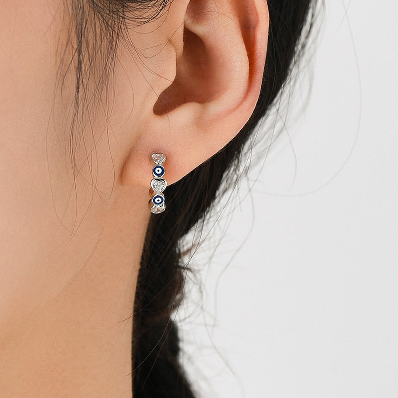 Nosso Brinco Argola Olho Grego e Coração em Prata 925 conta com um design exclusivo e com cada detalhe pensado para completar e trazer mais beleza ao estilo de cada mulher. Prezamos pela alta qualidade das joias, utilizando os melhores materiais, livres de níquel, chumbo e todos hipoalergênicos.