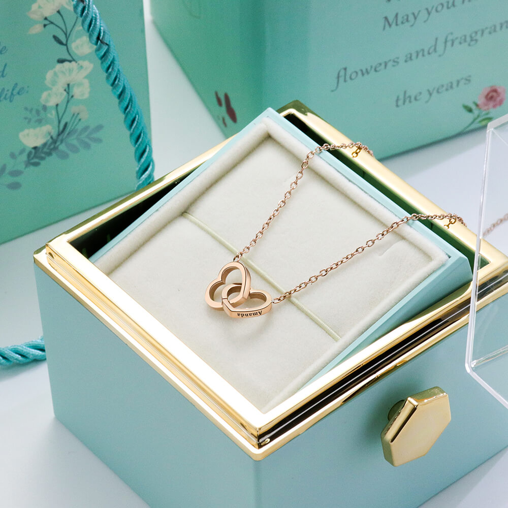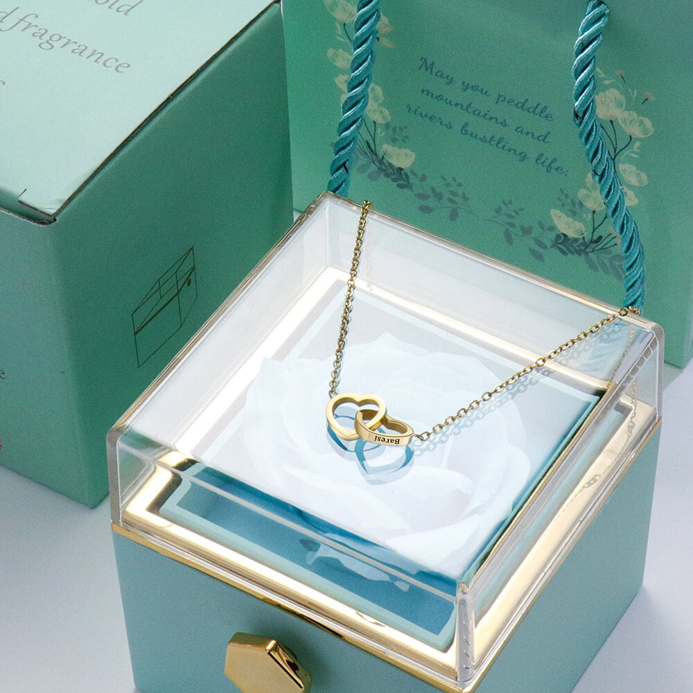 Caixa Rotativa Rosa Eterna Com Colar de Prata 925 Personalizado