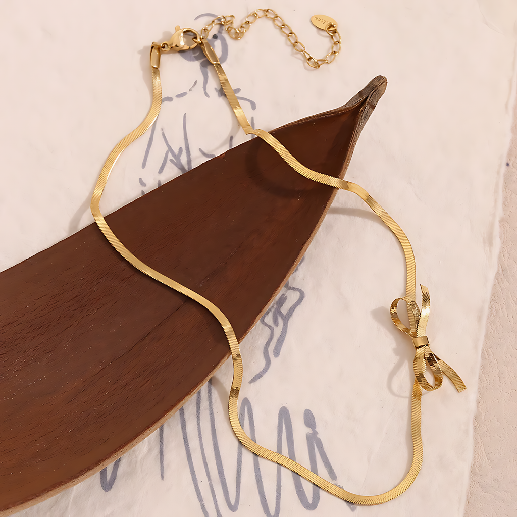 Descubra a sofisticação atemporal com o Colar Choker com Laço Banhada em Ouro 18k, uma peça autêntica da nossa exclusiva coleção clássica de semijoias.