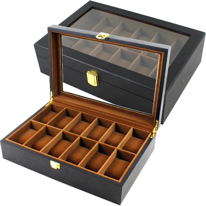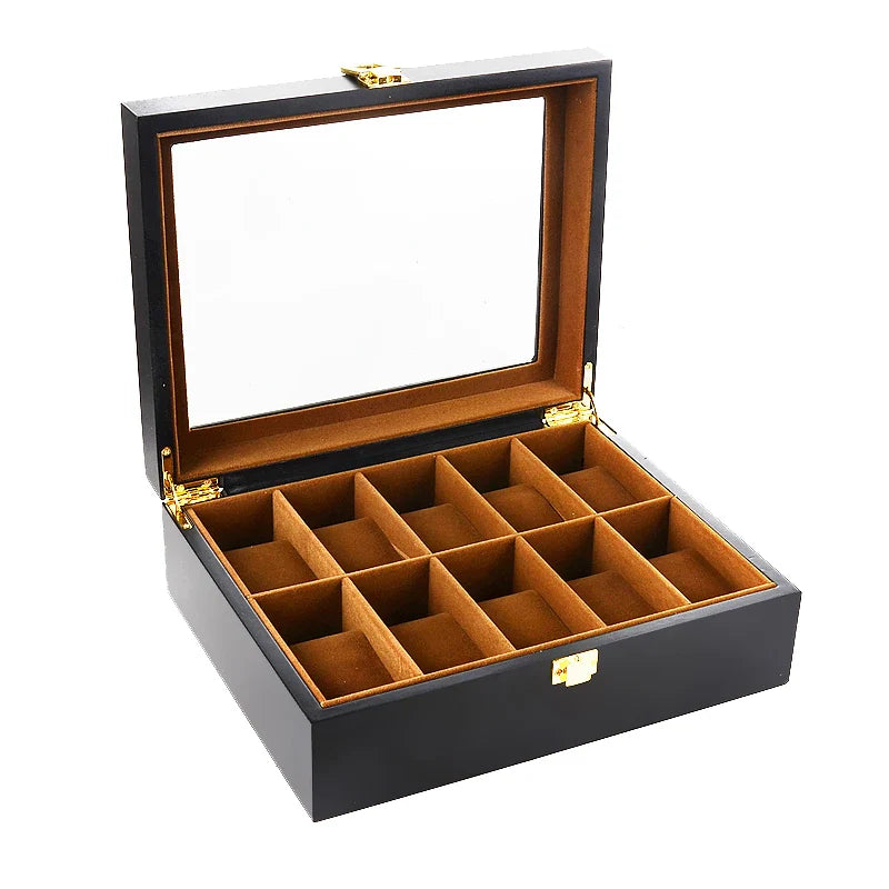 Caixa Relógios Madeira Luxo com Almofadas 6, 10 e 12 Slots