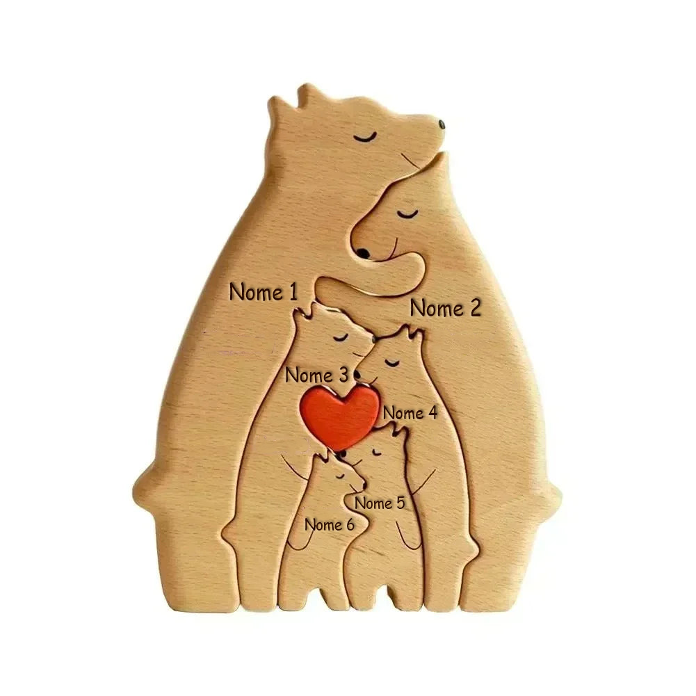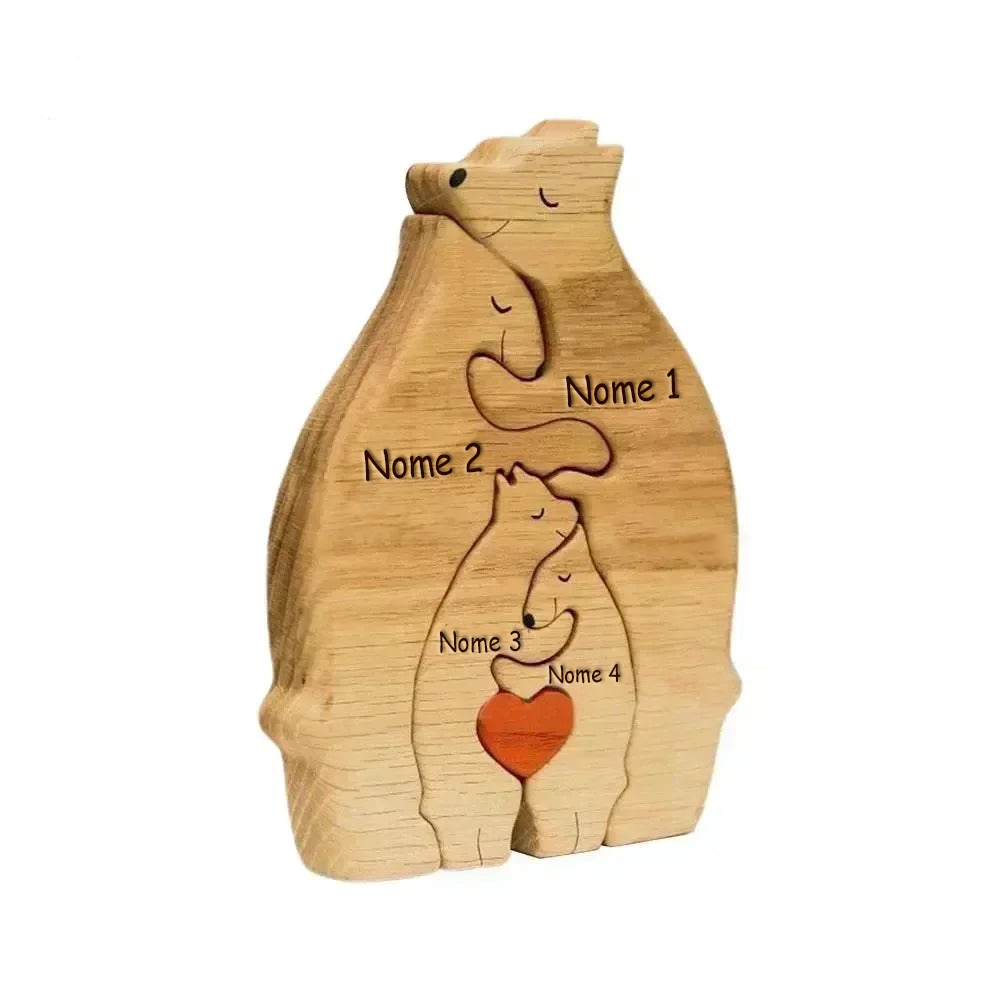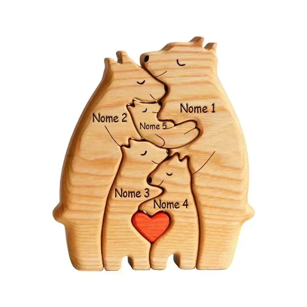 Família de Ursos Personalizáveis de Madeira
